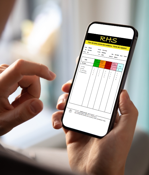 MYRHS.lu est une plateforme digitale innovante qui centralise l’ensemble de vos rapports d’intervention. Accédez à vos suivis en temps réel, consultez les plans interactifs, les rapports photos et les appâts numérotés, pour une traçabilité complète et un contrôle total de vos traitements.
