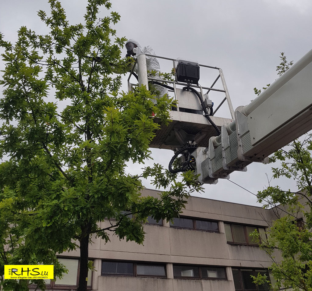 RHS intervient pour la destruction des chenilles processionnaires au Luxembourg, quelles que soient la hauteur et la situation. Nos spécialistes garantissent une protection et sécurité maximale lors de l’intervention. Le traitement comprend l’aspiration sécurisée des cocons et chenilles, ainsi qu’une géolocalisation et un rapport d’infestation. L’objectif est une éradication complète et durable.